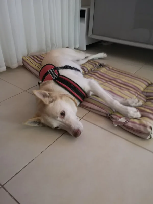 Ice was a Canaan Dog. He was adopted by us in 2014, at the age of between 5 and 8 (aproximations by 2 different vets), after a very difficult beginning of life which included around 2 years in the streets and another 2 years in a shelter. Very quickly he began giving signs of recuperation, both physically and psychologically. He became a beautiful and very loving dog, as you can clearly see by the pictures, and was the heart of our home. He died in 11/1/2023, after a cancer that left him without the ability to continue. We all miss him very much, but it was impossible to keep him going in all the pain that he was.