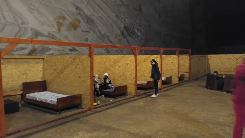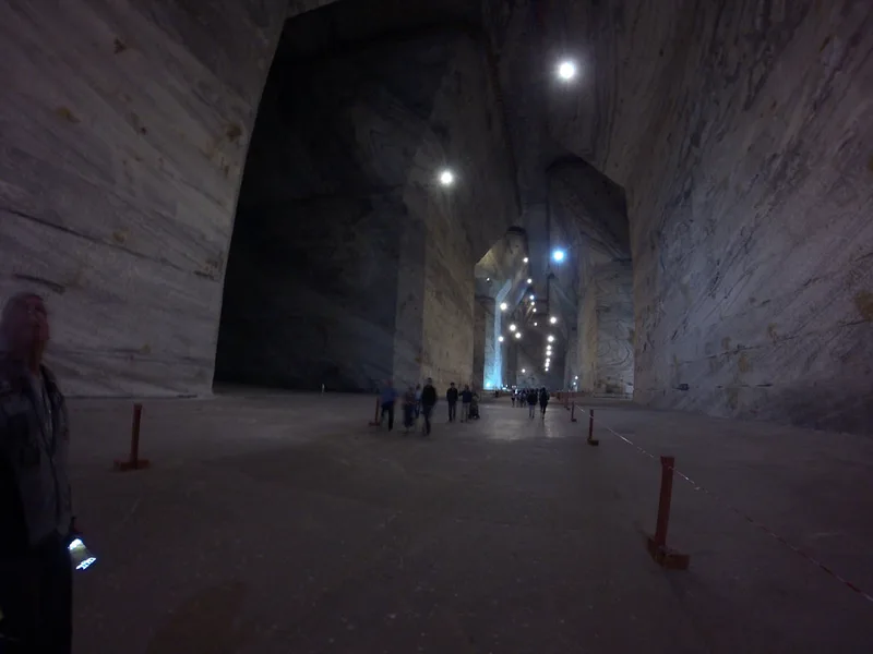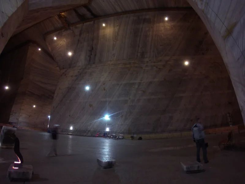 The Slanic Prahova Salt Mine is a fantastic place, even difficult to explain. The first thing you do is to go into a van, which takes you into the mountain. Then, for some 15 minutes, you continue travelling inside the mountain with the van, which takes you 254 meters deep down under the surface. All the time you see other vans coming back, showing that there are a lot of people and much transportation.