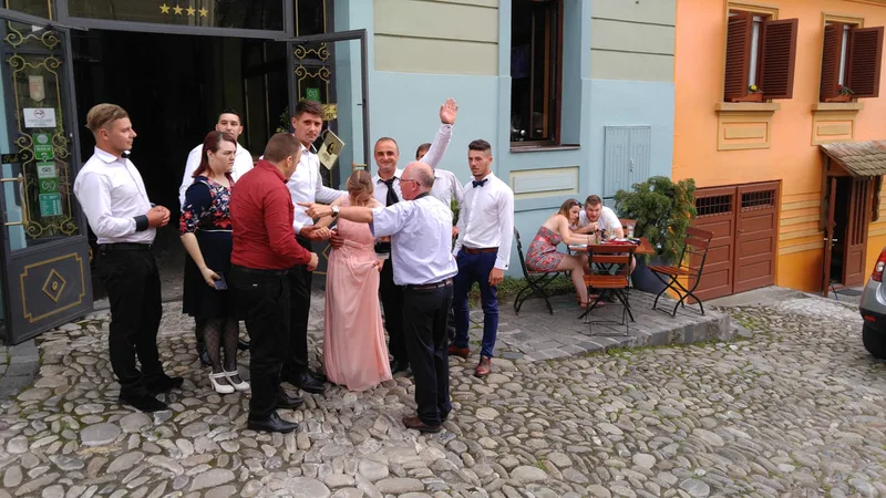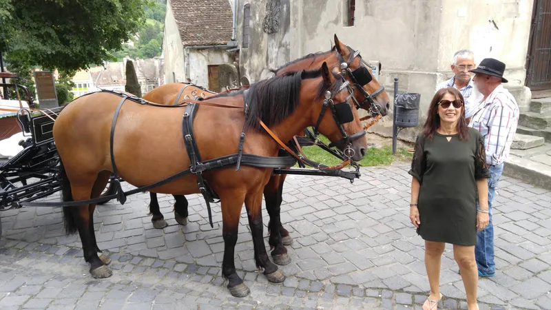Sighisoara is a beautiful old town, with a new city being built around it. Again, our hotel (the Korona) was walking distance from the old town, so we walked to there and in there, and didn't give up a ride on a horse-car. In the evening, we took a dinner in one of the restaurants at the main plaza of the old city, at the balcony at street level.