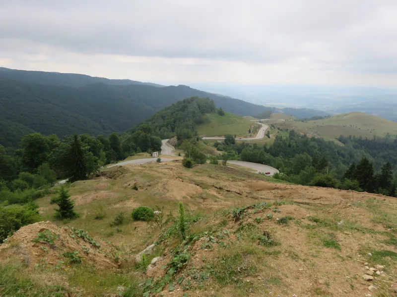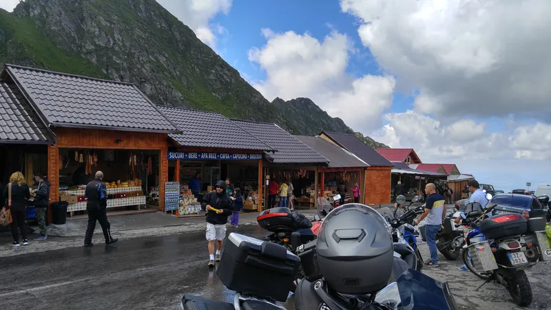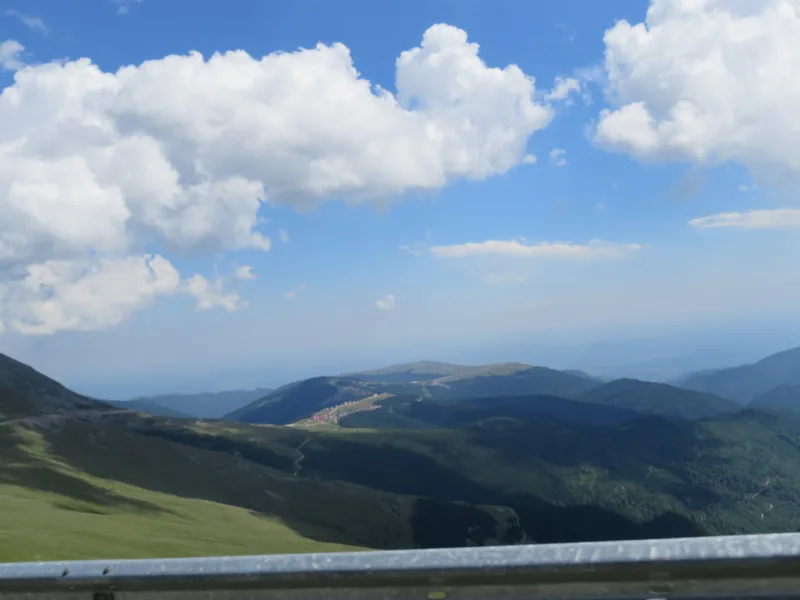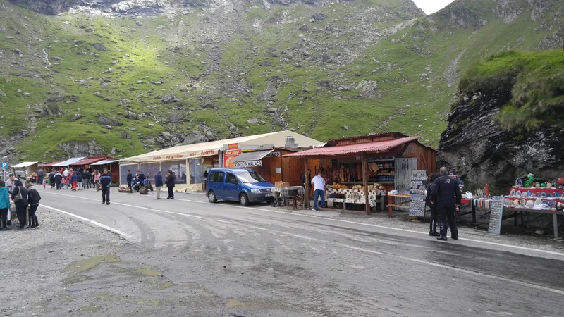 After the lake, you begin going up more steeply, and as you go up the view changes - instead of the rivers and the big trees, we begin seeing the top of the mountains, filled only with low vegetation, looking like grass. We begin going up until some Kilometers before the Urdele Pass, the highest point of the Transalpina at 2145 meters. At a certain point on the way, were you can see (and take pictures of) the Urdele Pass very well, and exactly there we will find a stop with restaurants and shops. A chance to rest a little, at a very cool weather, before doing the Urdele Pass.