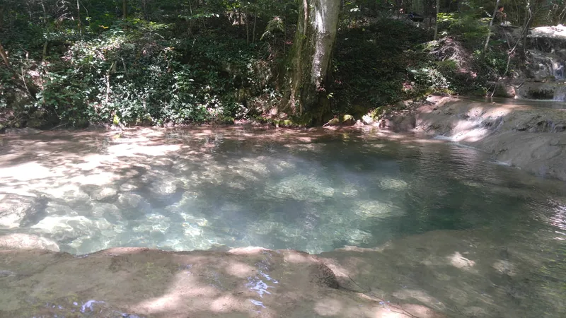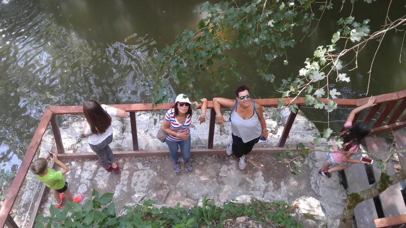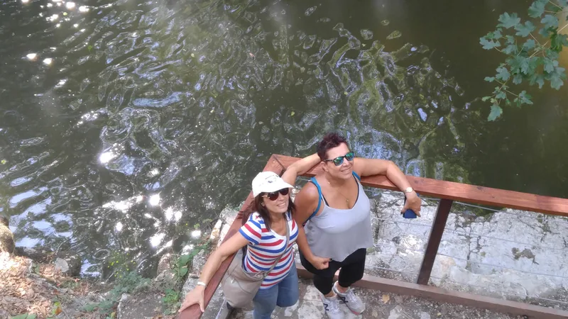 We walked with the path for some time - it looked like forever! - and got to a place where the river came from two directions, through its regular path and also from the top as a kind of a waterfall, passing through so small "lakes" or swimming pools inside rocks.Water was freezing cold. But Eitan and me couldn't resist going in at least with our feet. Eitan got first to one of the swimming pools in the rocks, and literally immersed himself into the water up to his head. Regarding me... no chance I would do that, that freezing water would touch my feet only. But I got to the rocks and their swimming pools, and managed to see the clear waters up there and take some pictures of them.