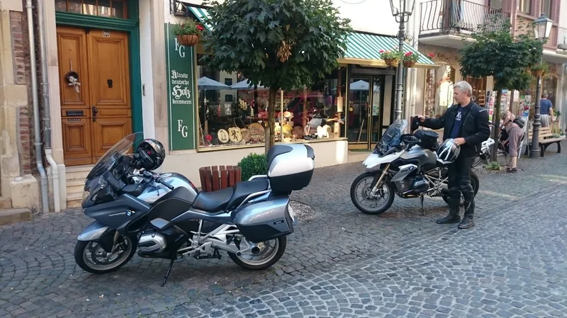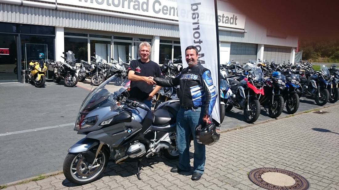 After arriving in Frankfurt, I travelled directly to Darmstadt and to MCD (Motorrad Center Darmstadt) to begin doing with them the paperwork that would allow me to drive the bike in Europe. First we did the temporary insurance and license plate for the bike, and with the two of them ready, we went to their transportation authority to have the license and certificate of property printed.