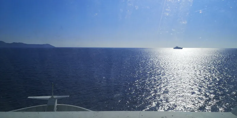 The trip was supposed to take 24 hours. We left at 13:30, and arrived in Patras at 12:50 the next day. Considering that there was a 1-hour difference between Greece and Italy, the total trip took 23:20 hours. The boat was very comfortable, except for the most important place: the seats. They offered the trip for 89 Euros + 10 Euros for 1 Air Seat. It seemed as an upgrade for the regular trip, so I took it. At the end, the Air Seat is less than an intercity bus seat. Less comfortable, less reclining, less space, less everything. It would be better not to order anything and to stay all the night sitting in the bar chairs. Anyway, the ship had 2 very good restaurants, 1 very good bar (and probably other bars in the other decks, a very nice reception, and a very good lounge with another very good bar inside of it. The lounge is where I spent most of the trip, and from where I took the pictures above of the view. The problem is that they close from 23:59 to 06:00, so I didn't wait for it to close and went to find elsewhere to seat. I did use my 10-Euro Airchair for about 2 hours that night, and it seems I wasn't the only one, the hall of the Airchairs was almost empty.