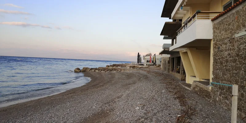 While exiting Diakopto, when I was about to take a right turn to the freeway, I noticed a sign pointing to Athens both to the right (the freeway), and straight away. I understood that probably this was the old road to Athens, going by the sea through the villages, and decided to take it.