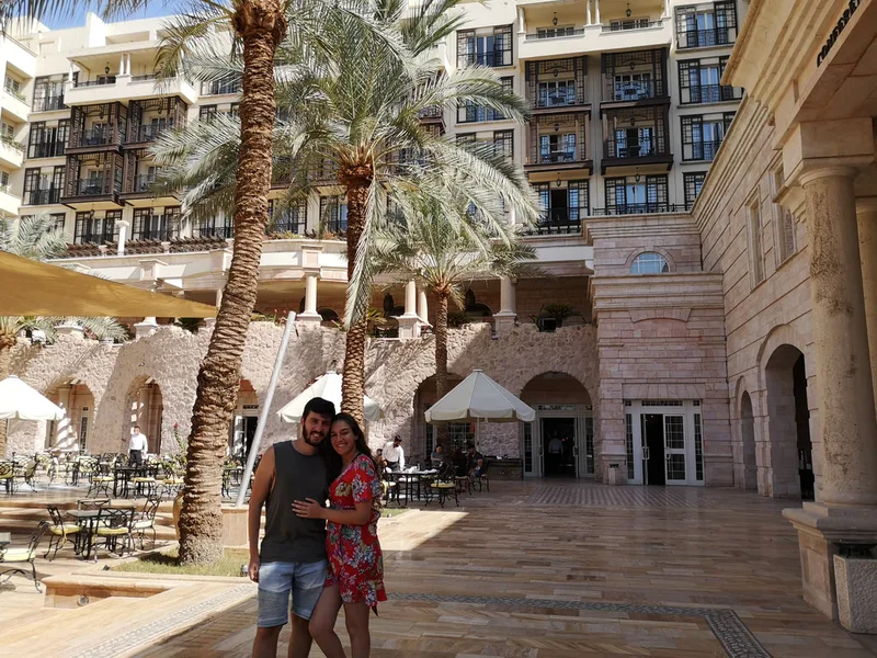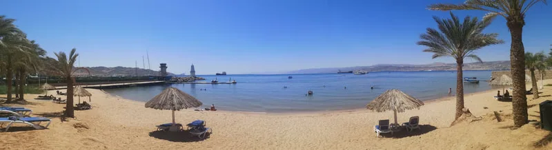 We flew from Tel Aviv to the Ramon Airport near Eilat, and from there took two taxis until the Rabin terrestrial border pass, where we passed to the Jordanian territory. A person organized by the Arkia tourism service was waiting for us to help us go through the Jordanian border bureaucracy (5 minutes is all is took, in contrary to the Israeli side which was much more complicated) and accompany us until the hotel. It is compulsory to have some kind of "babysitter" waiting for you at the border to take you to the hotel. Probably a way to give more work to more people. You can arrange it personally (through recommendations on Facebook groups that regard Aqaba) or let the travel agent arrange it for you. Many of them are tourist guides that you can later contract for trips.