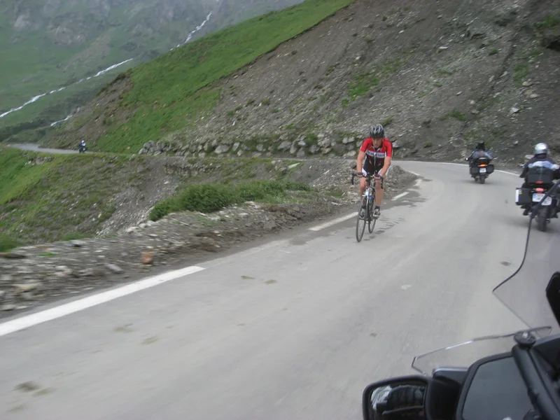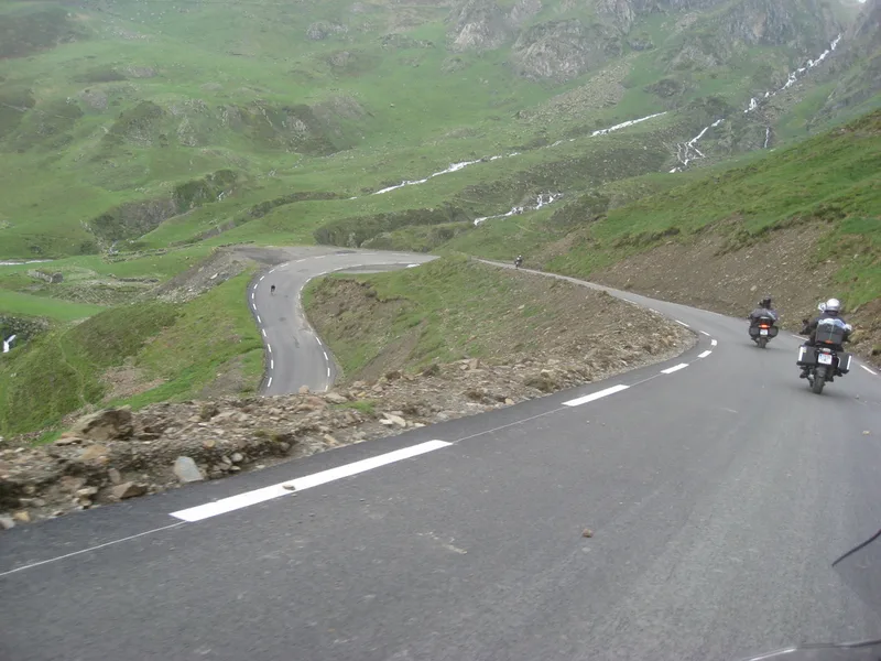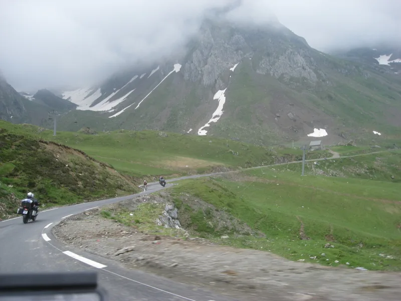 We began by riding Col d'Aspin from Arreau to La Mongie, a beautiful mountain pass, although not very difficult or exciting. At La Mongie, we were intending to take the cable car to the Pic du Midi, the highest peak in the Pyrenees, from where one can see all the area around. Unfortunately, the weather did not help us, and we noticed from below that the whole peak was covered by clouds, so there is no point in going up there. We settled for a good cup of tea at the cold La Mongie.