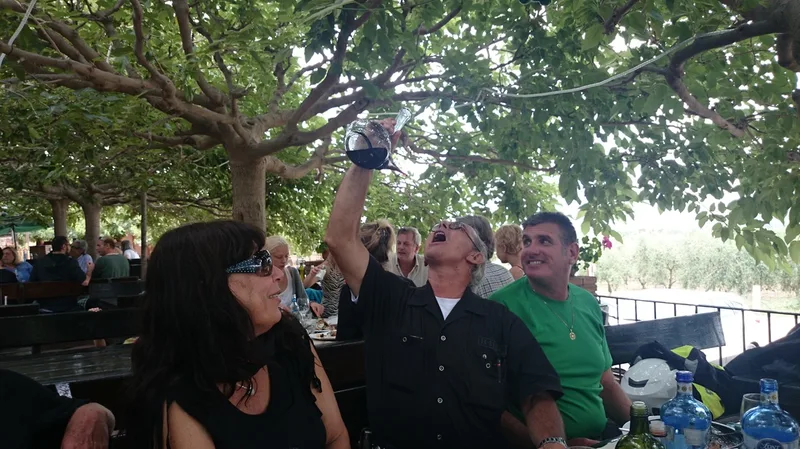 From there, we continued straight to Montserrat, where some of the members of the Catalunya Burgman Club (who were my internet friends for some years) were expecting us for lunch together, and the ride in the motorcycles to Montserrat. They took us to a restaurant in the vivinities of Montserrat called Vinyanova de Collbató. This is a very interesting place, a typical Catalunyan restaurant with a very good menu, excellent "Porron de vino" which made the atmosphere very relaxed, and a series of other activities for before/after the meal and all the wine and until we could ride the motorcycles again.