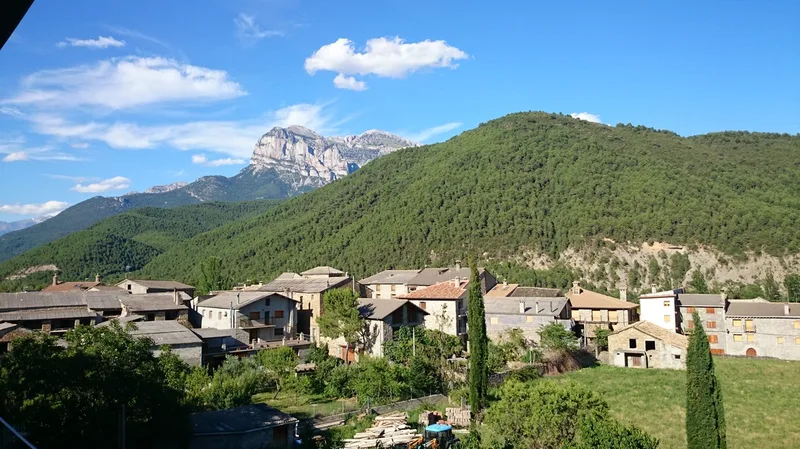 From Monte Perdido we continued to our hotel in Labuerda, which is around 2Km from Aínsa. At the time of the reservations, there were no hotels in Aínsa offering 4 rooms, so we decided to go for this hotel in Labuerda, the Turmo Hotel. Good decision. The hotel was excellent, the service even better, and the view was just beautiful. In any case, Aínsa was 3 minutes away by motorcycle, and we spent the evening there. Recommended hotel for everyone passing through the region.