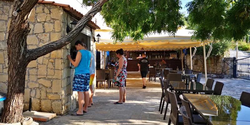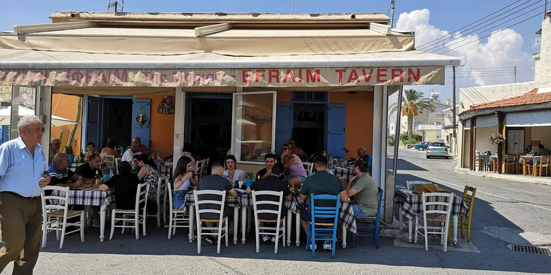 We left Aphrodite's beach around 14:00, and were already wishing to eat something. Since the restaurant in front of the beach didn't seem to be something special, we decided to look in Google Maps for a good restaurant in the area. There we found a small Taverna called Efraim Taverna in a small town called Kouklia.