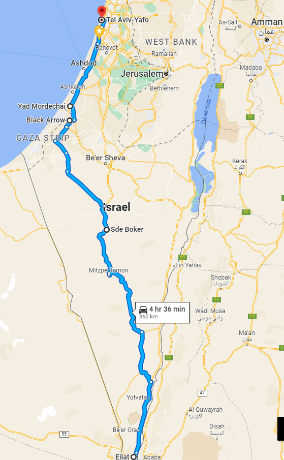 After crossing the country from Tel Aviv to the very North of it in Metula, and then South to Eilat, now it is time to take our last itinerary in the country, the one which will take us back from Eilat to Tel Aviv.