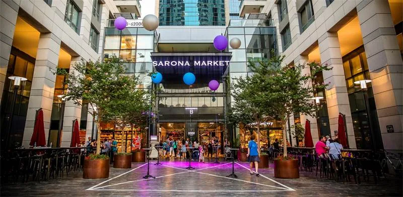 Sarona Center - Sarona Center is a commercial and entertainment complex located in the heart of Tel Aviv, Israel. It is situated in the Sarona neighborhood, which was originally a German Templar colony in the late 19th century. The complex occupies an area of approximately 140,000 square meters and is known for its vibrant atmosphere, offering a mix of retail, dining, office spaces, and cultural attractions. The houses were moved and separated one from the other to make more space for walking, and the original trees were kept and moved when necessary. Behind the open center there is the Sarona Market, with a vast variety of restaurants to eat.