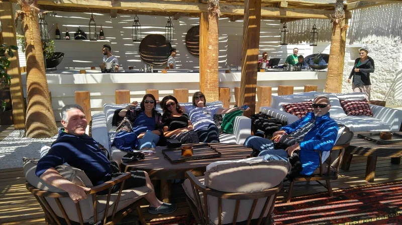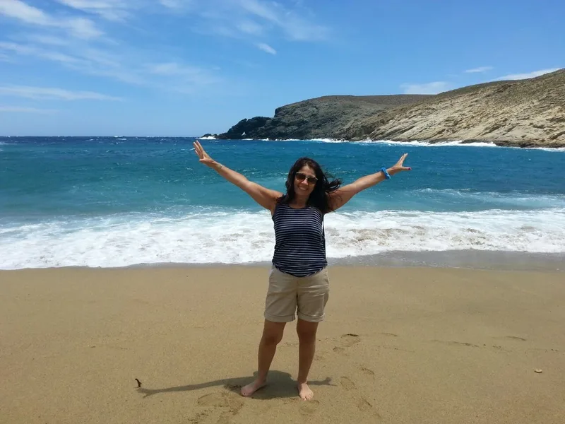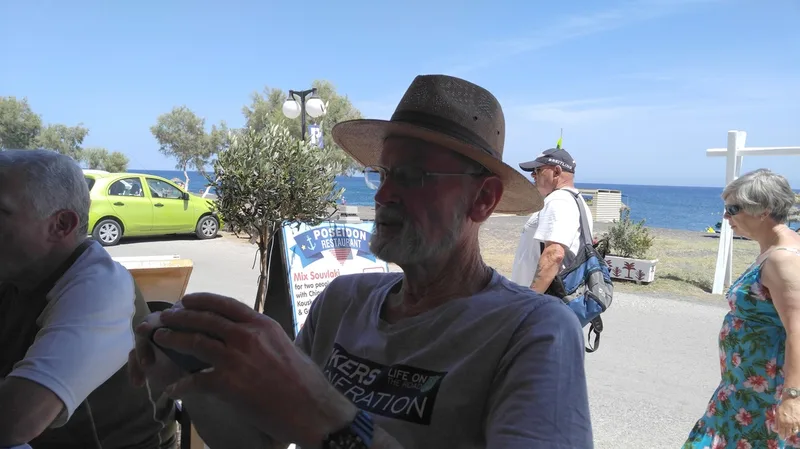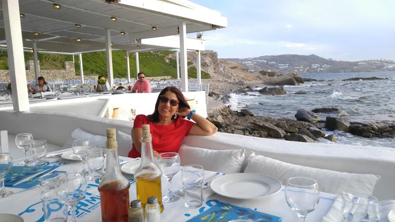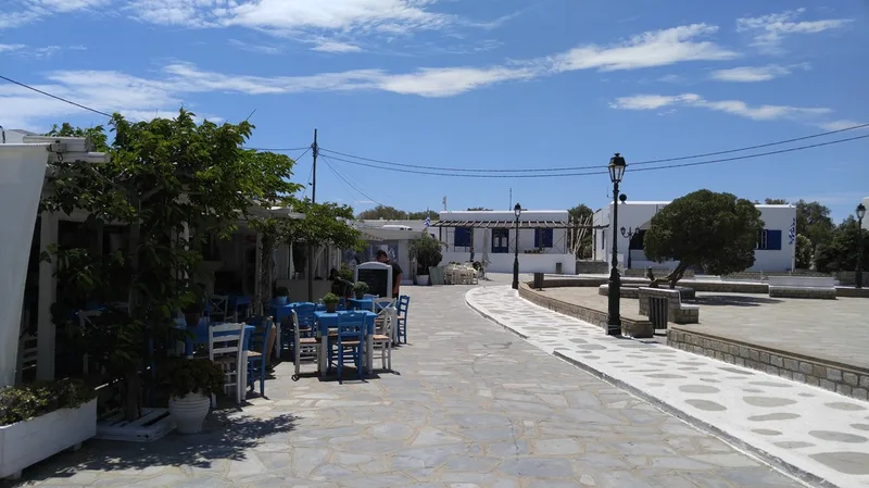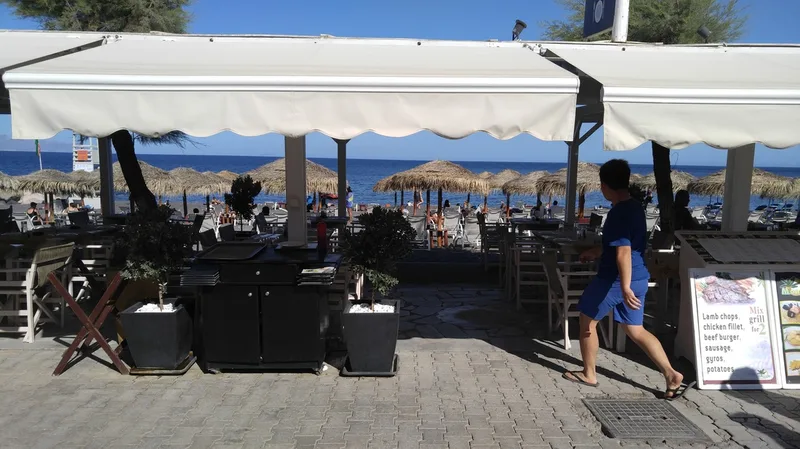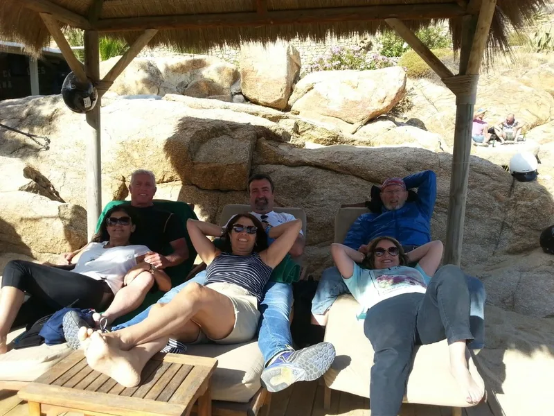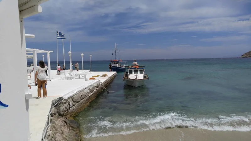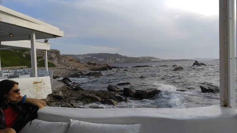 We stayed about 2.5 hours in Panormos, where we could find sun, shadow, a beautiful seashore, great service, and no wind.