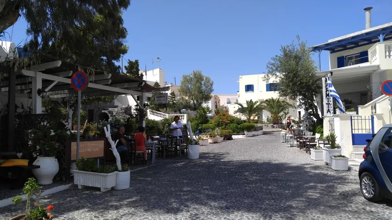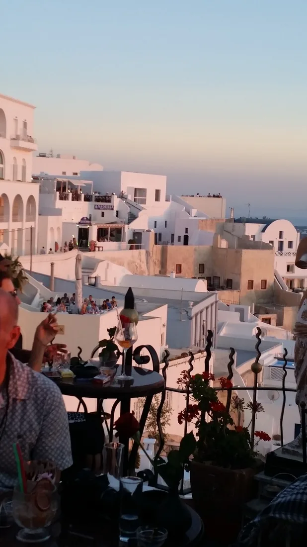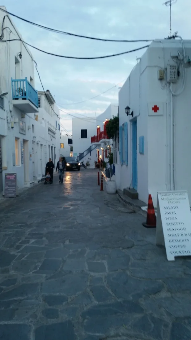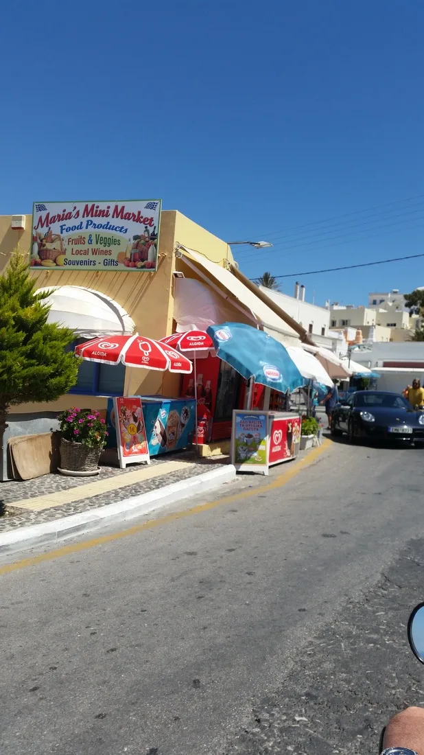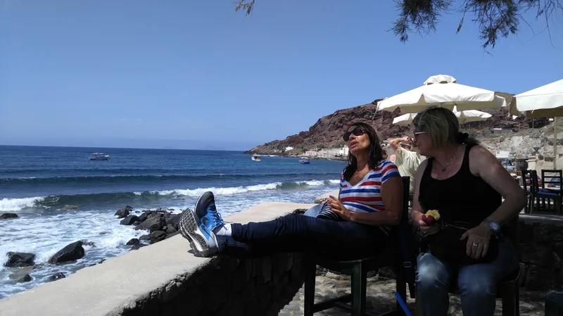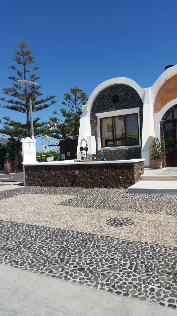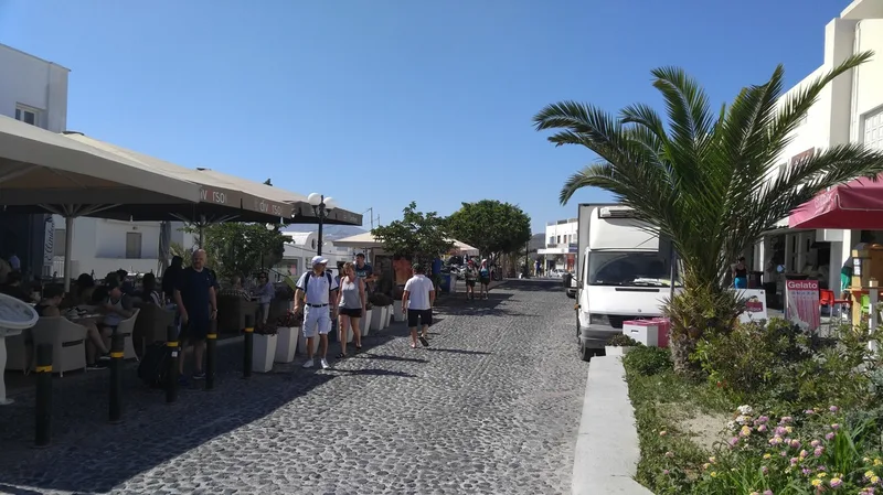 We returned to Fira around 16:00 for a late lunch, and went back to the hotel to relax. In the night, we went out to Perivolos beach only for eating a desert or an ice-cream.