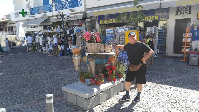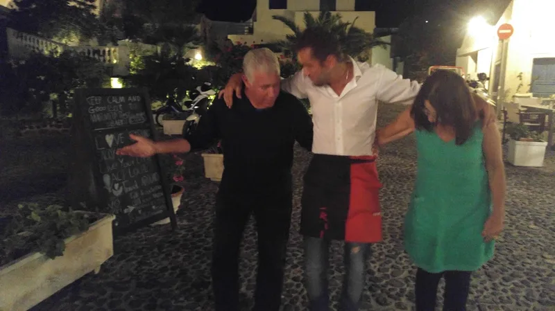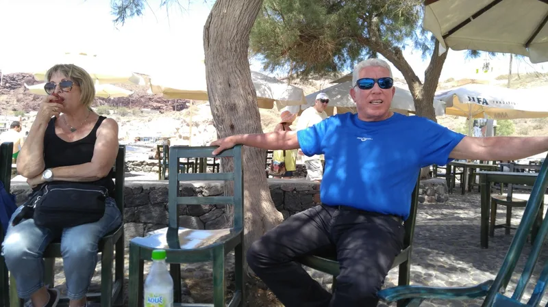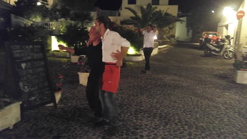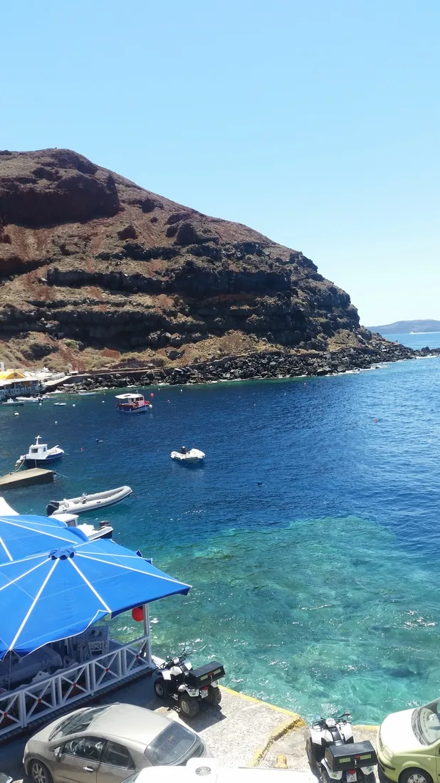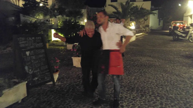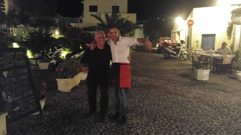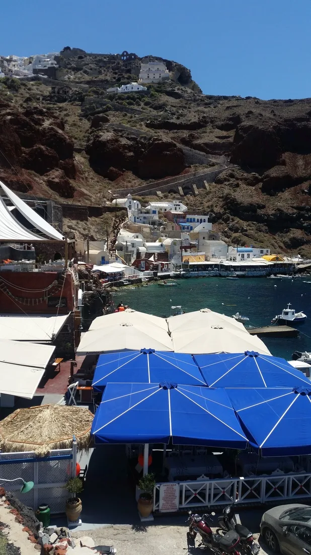 We returned to Fira around 16:00 for a late lunch, and went back to the hotel to relax. In the night, we went out to Perivolos beach only for eating a desert or an ice-cream.