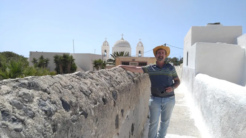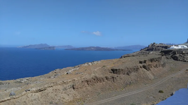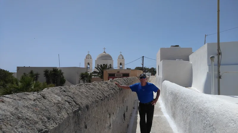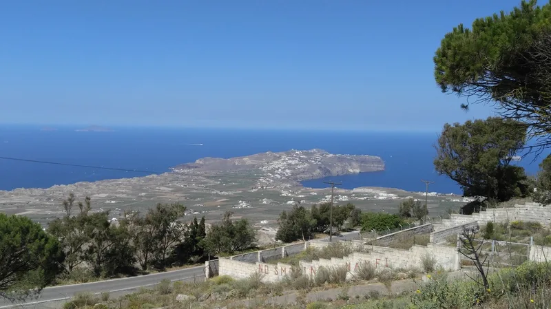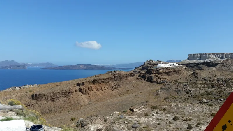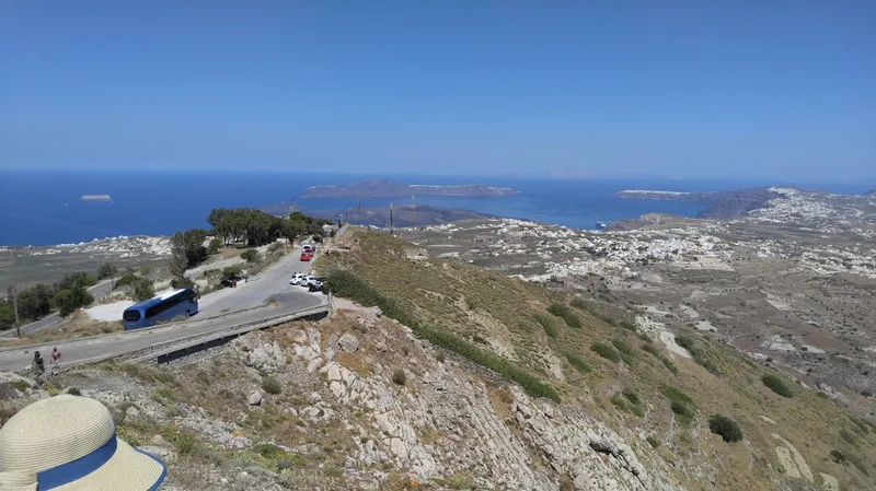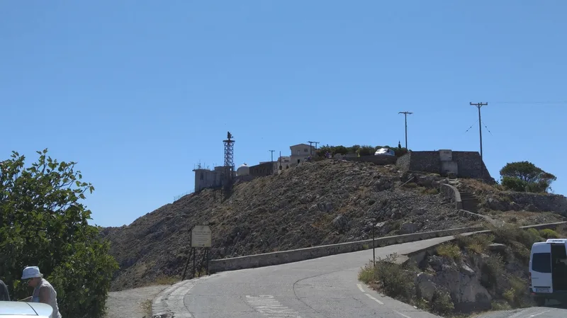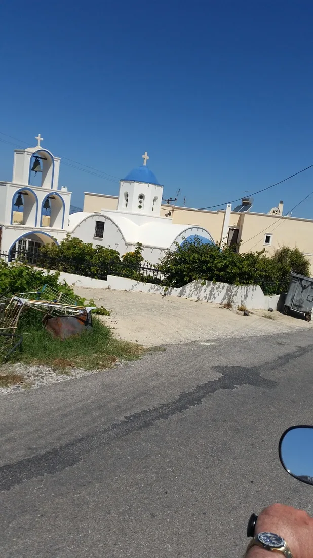 This is the plan we did and followed. We left our hotel in Perivolos with the ATVs at 10:00 AM, and first thing we did was to travel to the direction of Pyrgos and continue uphill to Profitis Ilias, a monastery for the prophet Elias that is in the higher hill in the island. From there we can see the whole island.