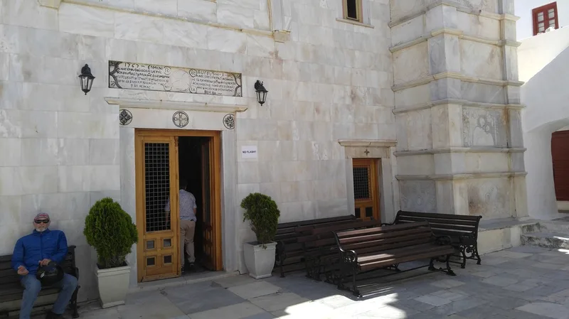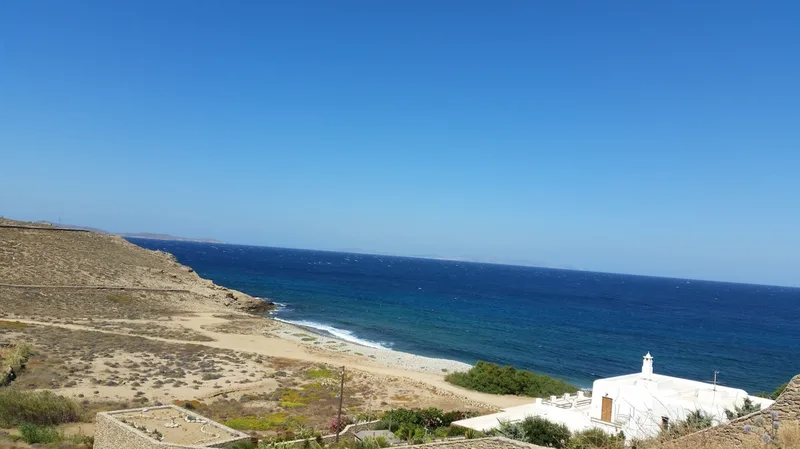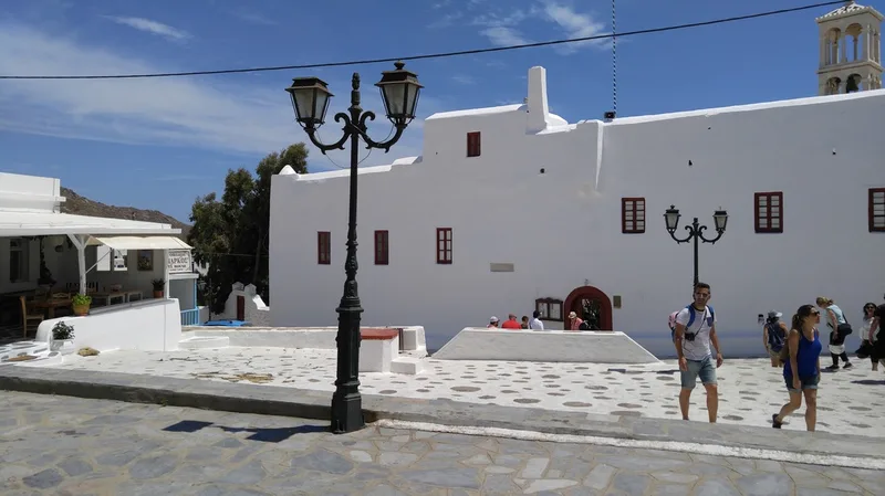 We left our hotel at 11:00 approximately, in the direction of Ano Mera. Ano Mera is a typical old and small town of Mykonos. We took our impressions about the town, and mainly the local cathedral and the restaurant plaza there (this was important for later) and continued east.