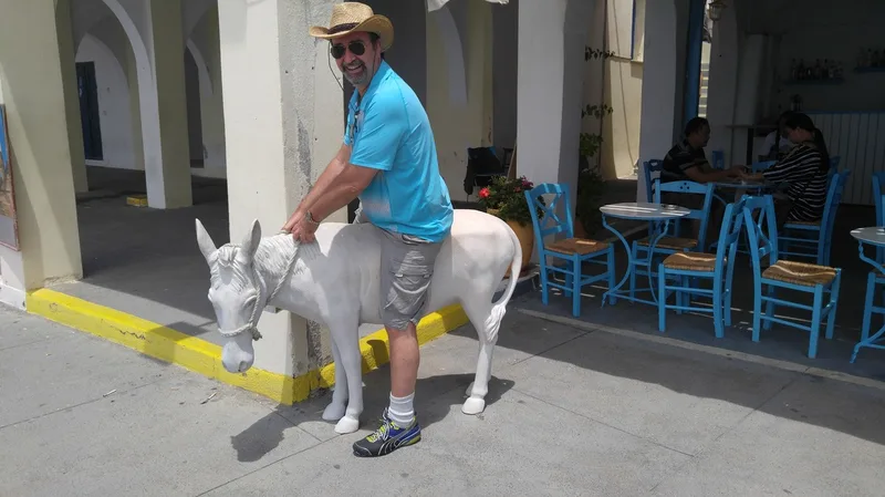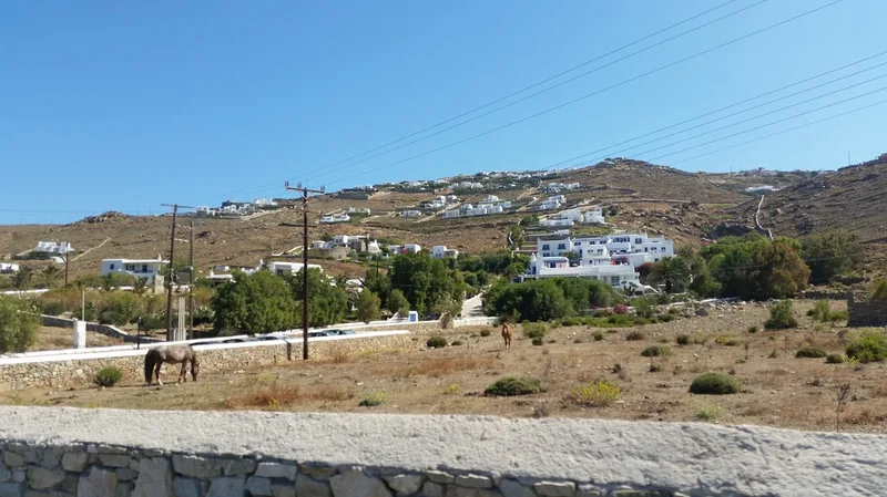From Kalafatis we visited (without stopping, again, due to the strong wind) the beaches of Kalo Livadi and Elia, and then pulled North to Ano Mera for lunch. We had a very BIG lunch in one of the restaurants, which we found in the morning to have a big promotion on business lunch for two.