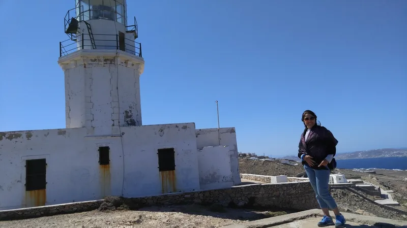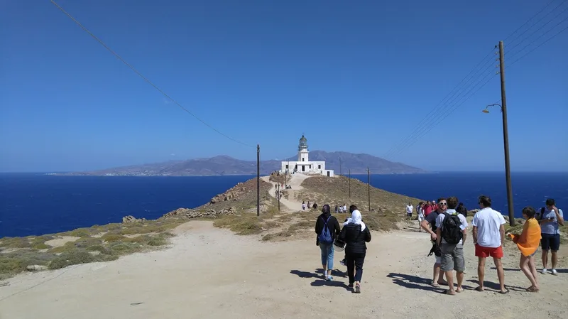 We passed through Mykonos New Port, then Tagou Beach, Tourlos Beach, Aghios Stephanos, and ended up at the northernmost point of the western shore, Fanari Beach. There we could see the famous Fanari Faros (or in English, Fanari Lighthouse).