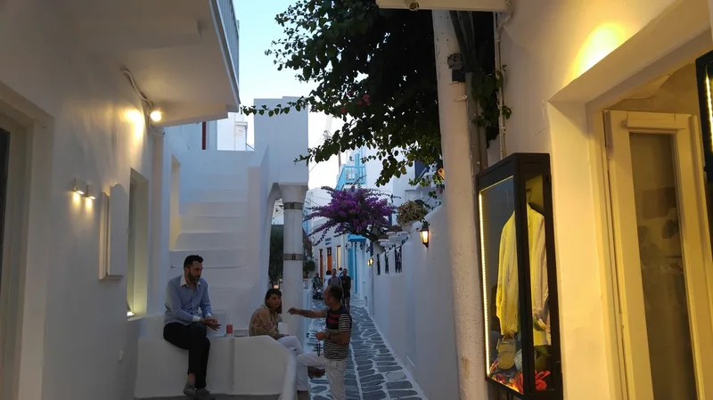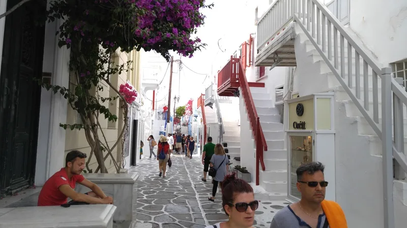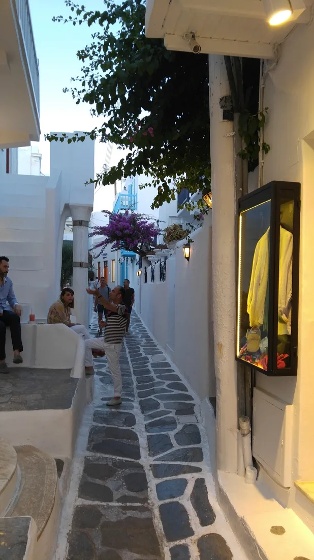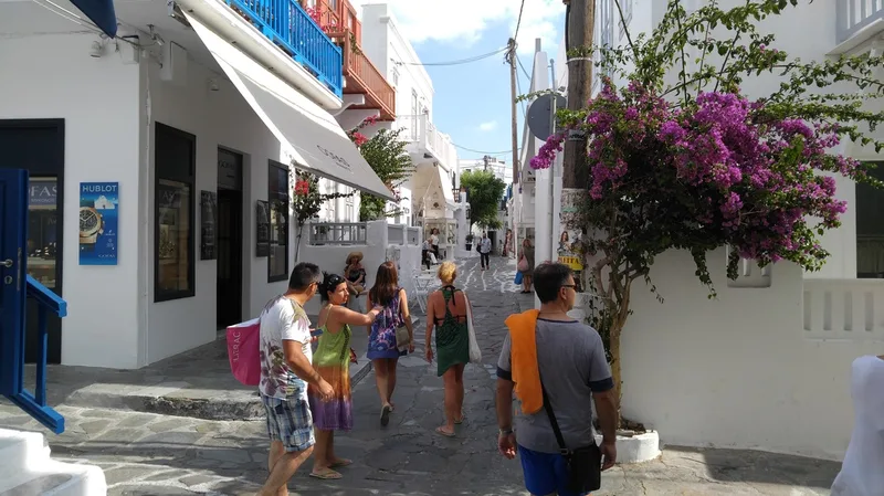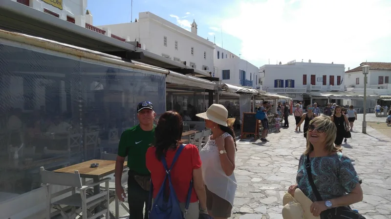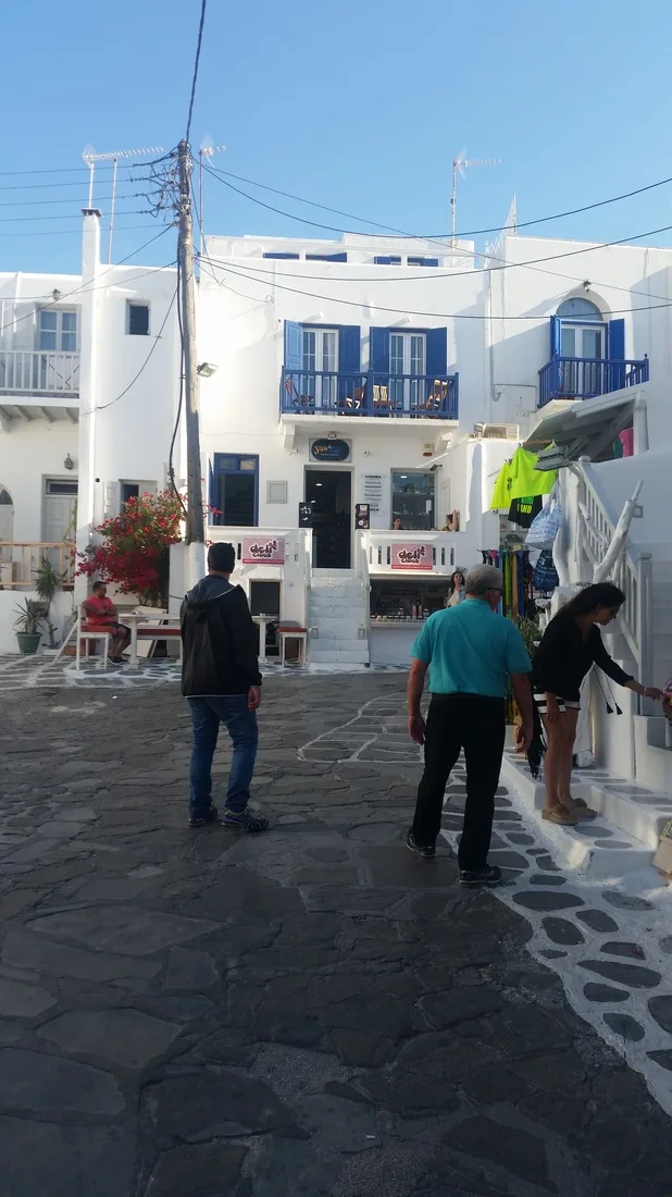 We had lunch at a restaurant just at the center of the Mykonos Old Port. From there we took a walk of nearly two hours within Little Venice, the Commercial/Tourism center of Mykonos Town, made of very small walking streets that really do remind Venice a lot.