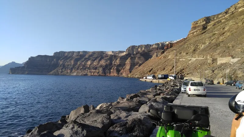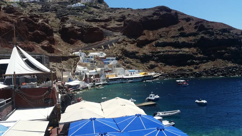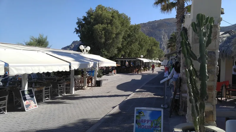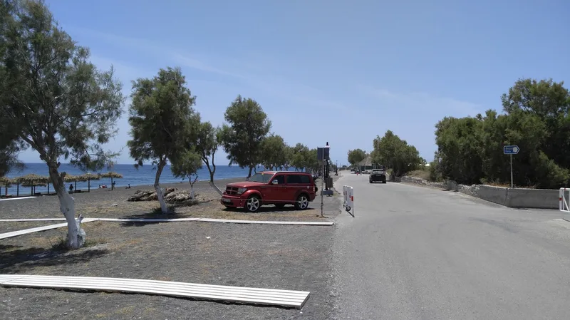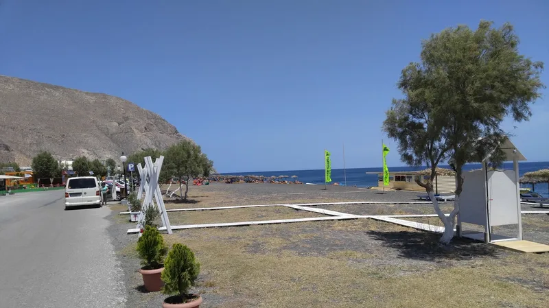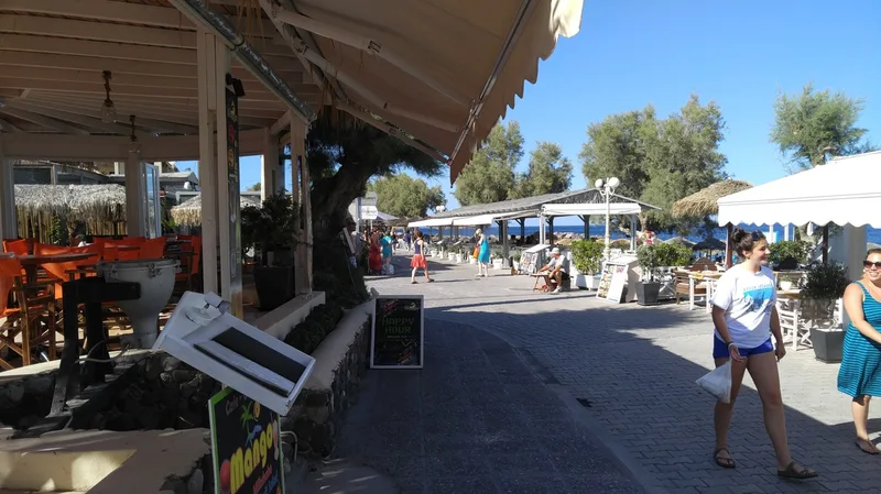 Kamari is another flat beach of Santorini. With much more movement than Perivolos or Perissa, it is full of bars and restaurants, and the black sand is full of chairs and umbrellas. It is a delight to walk through the beach walkway.