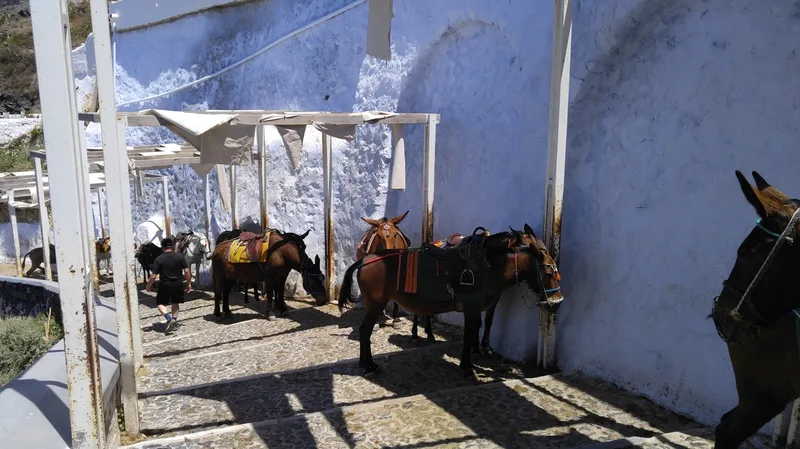 The way is actually a steep downhill slope, fit only for pedestrians and horses, going round and round as a serpent from the heights of the city to the port down at the sea. Well, I said horses: you won't miss the horses in the way, and neither the smell of what they leave behind. It takes around half-an-hour to arrive to the port at the bottom, but the way is very beautiful and enjoyable (despite the smell).