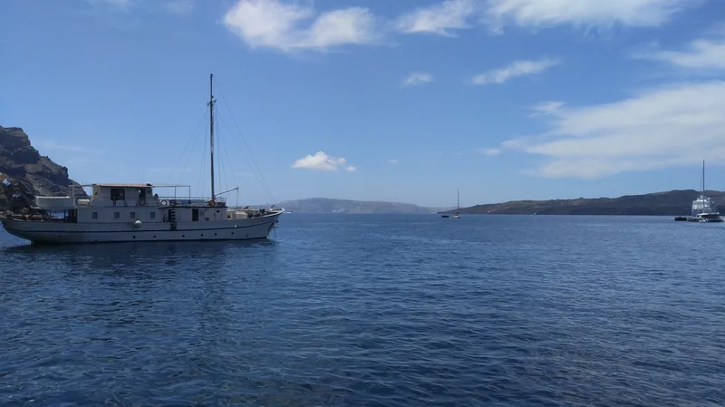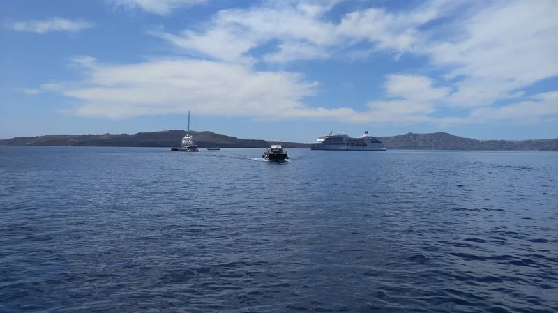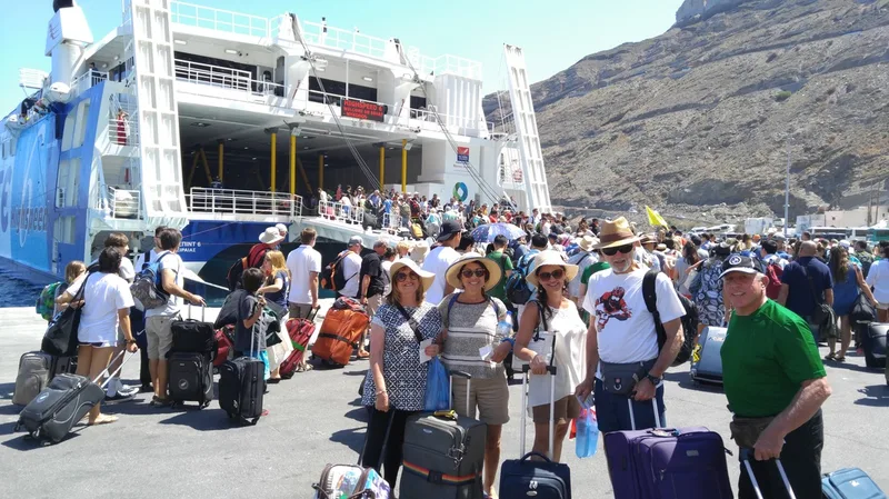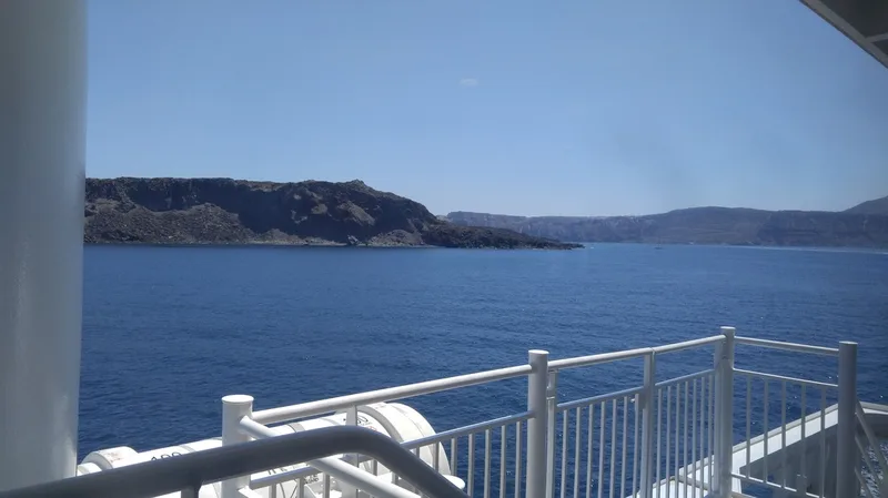 We had reservations for the Ferry Boat of 11:00, so at 10:00 we checked out and the hotel car took us to the Athinios Port. We arrived at 10:30, and after half-an-hour, there we were in the boat.