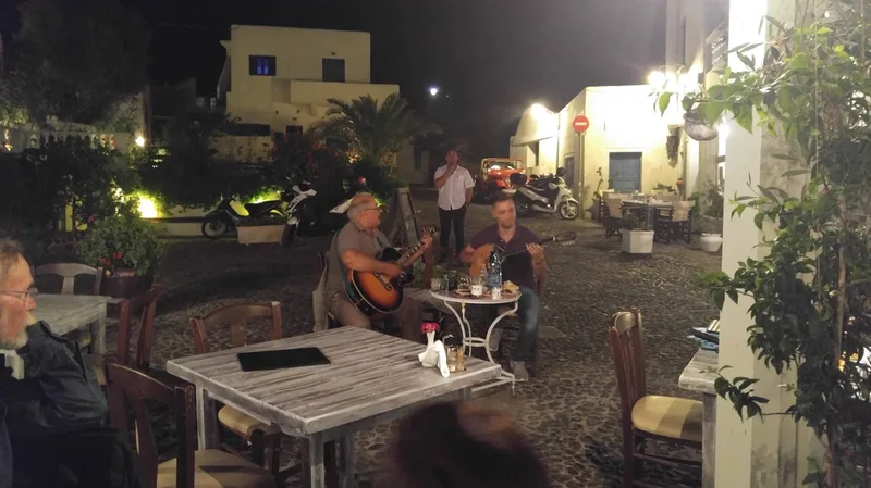 Well, sunset was over, time was 20:30, and it was the moment to find where to dine.Then we remembered that, while in Megalohori, the taverna next to the Raki was announcing that they would have live Greek music that night.