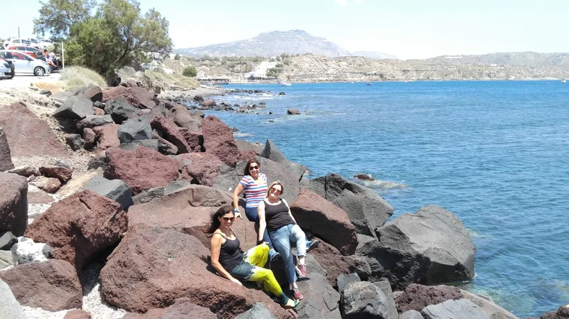 After 45 minutes, three glasses of Raki, and a package of olives, the girls came back and we continued to Kamari.