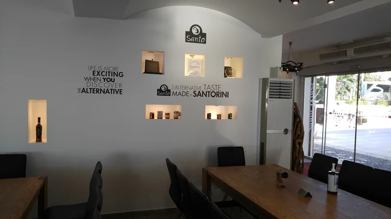 On our way we stopped at Santo Winery, probably the biggest (and richest) winery in the island. They have a huge visitor center for wine tasting and eating, and a shop for their wines. All this at the best possible place in the island, with the best possible view of Santorini's contour and sea. They are specially known for their desert wines. We tasted some desert wines at the shop and bought a bottle to take home with us and one day remember this vacation.
