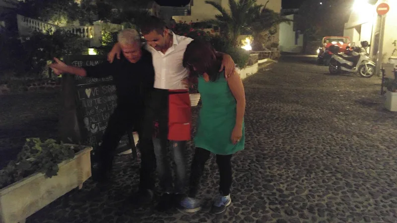 So we took the scooters and back to Megalohori. You can see below that we've had a great night there... and three more glasses of Raki...