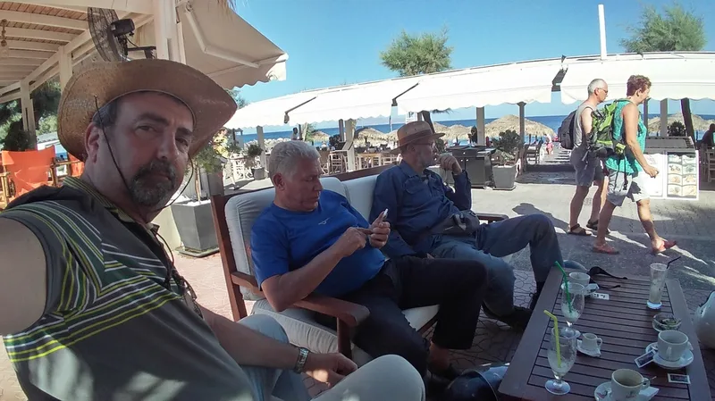 Then our good friends from other trips, Shmil and Louiza, decided to participate as well. We welcomed them happilly, this is a couple that we always like to travel with. At the last moment (around 3 weeks before we go on our way), a third couple, Amnon and Etti, asked to join us and were received in the group. Due to price differences, they took the flight to Santorini with Shmil and Louiza one day before us, and set to return half a day after Lily and me did.
