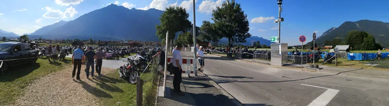 The above pictures of the parking lot show a little of what was happening to Garmisch on these days: the town was taken over by motorcycles. Organization says that around 30,000 motorcycles were in town. All hotels were full of motorcycles in their parking lot, all streets and roads full of groups of bikers travelling around, either to a specific destination in town, or just touring the place.