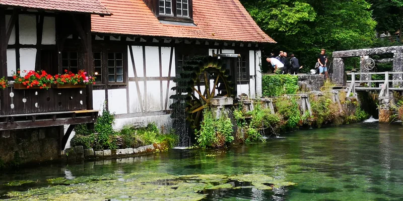 In the way, we stopped for lunch at Blautopf, a place recommended by Manfred from MCD. It is a café in the region of Blaubeuren, an area in which a river becomes an underground river, and splashes out after some kilometers. A beautiful place to stop and eat, and even to take a walk through the path following the river, if we only had the time to do that.